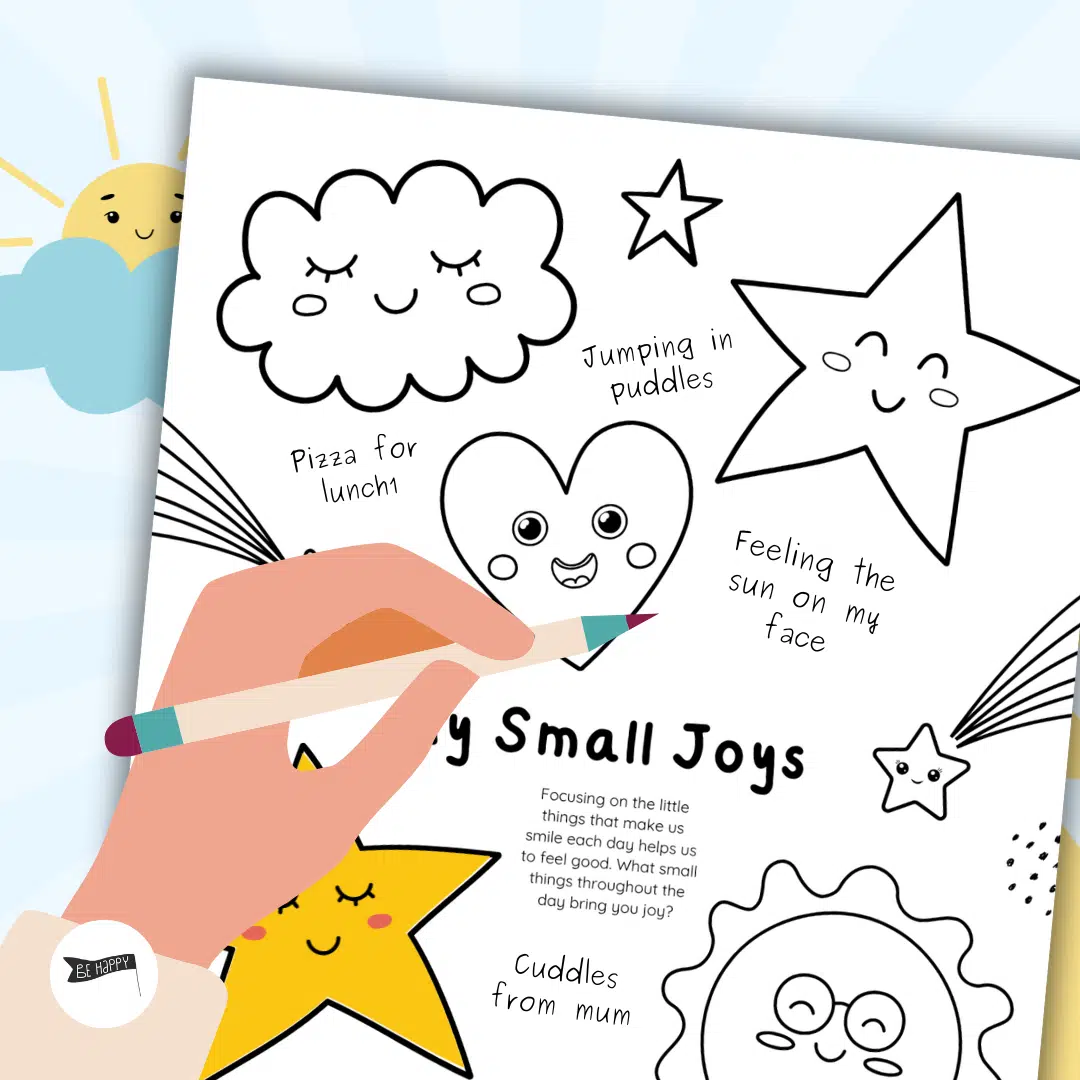 Let's think about and write down our 'small joys' the little things in our daily routine that bring us joy each day! It's easy to overlook the little things that become part of our day as we get used to them - the sun on our face or a beautiful flower on our walk to school. In a fast paced life, we want to encourage your children to slow down and focus on the small things that make them happy.