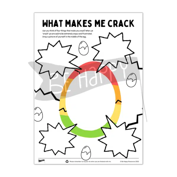 What Makes Me Crack is a dynamic anger management resource designed for children aged 4-11. This engaging worksheet enables children to explore their anger triggers and better understand what makes them feel angry and frustrated.